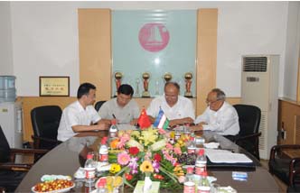 濰坊市市委書記劉運(yùn)與集團(tuán)董事長徐鵬強(qiáng)共同見證集團(tuán)與國外企業(yè)簽署合作協(xié)議